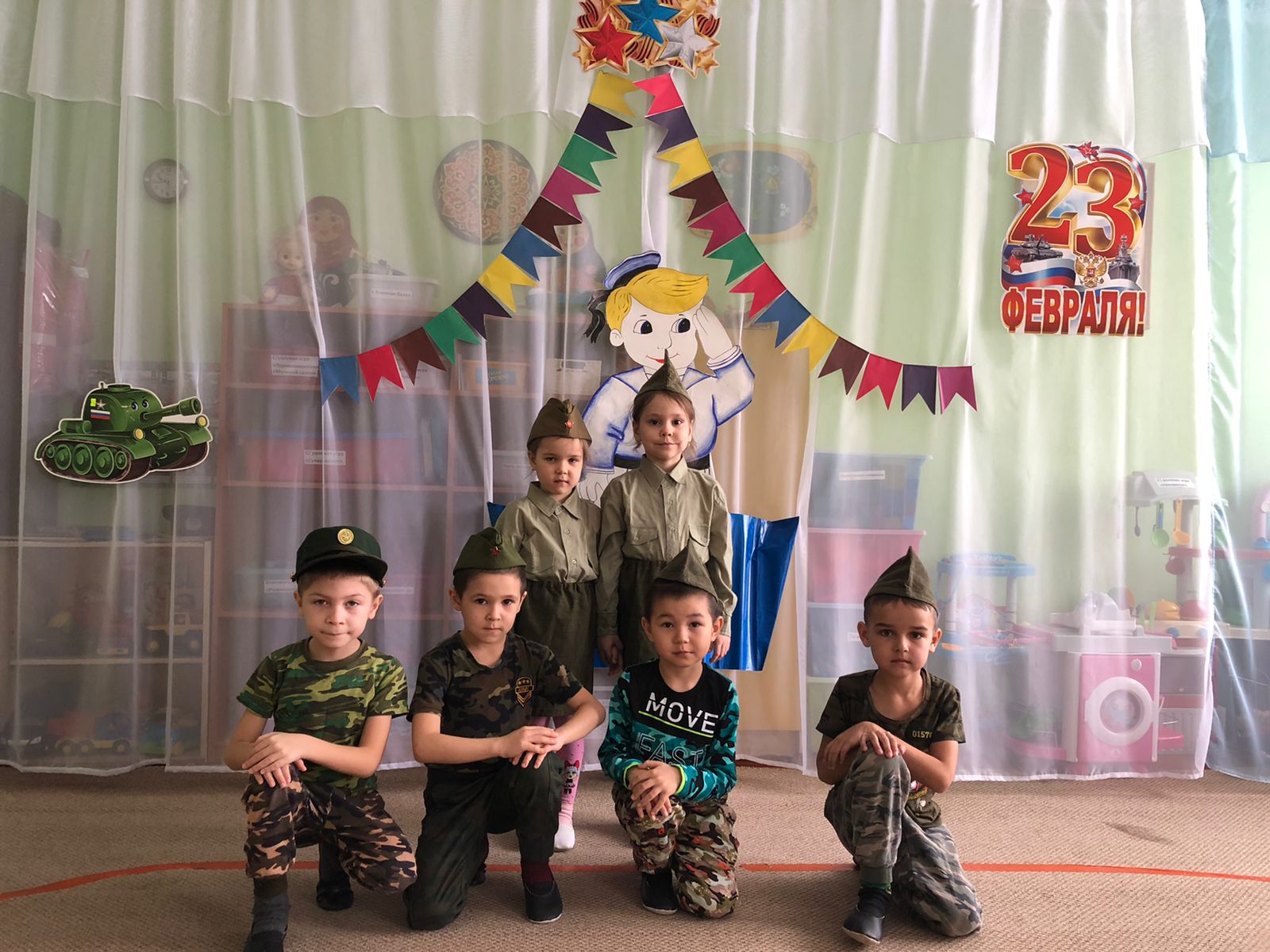 23 февраля- это праздник не только военных, но и всех мужественных и отважных людей, мальчишек детсадовского возраста, которые достойны сердечных поздравлений в мужественный февральский день. Мы знакомим детей и рассказываем, что такое армия, воспитываем уважительное отношение к военному человеку, прививаем любовь к Родине и развиваем патриотические чувства. По традиции в нашей старшей группе, провели праздник, посвященное 23 февраля. Дети с любовью, нежностью и гордостью читали стихи о защитниках Отечества, о своих папах, которые проходили службу в Вооруженных силах России, а сейчас защищают и оберегают свою семью. Воспитанники спели песни о папе, станцевали танцы " Морячка","Пацаны" , и вручили своим папам подарки, которые сделали своими руками.